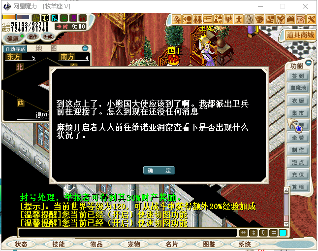 8、回法兰城里谢里雅堡3楼谒见之间,找小熊国特使(5.4)对话,获得“法兰特使徽章”。(拥有该道具,即可前往任务新地图。)