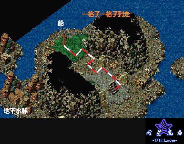 54、在地下水脉找到船只,交出“嗅觉器”自己划船来到尽头。请按照下图走